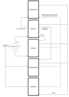 Prinzipiell gilt: "wer zuerst kommt mahlt zuerst". Eine Anmeldung kommt zuerst auf die Meldeliste. Erst nach Bezahlung der Teilnahmegebühr kommt die Anmeldung auf der Teilnehmerliste. Das ist der Normalfall. Alles andere sind Sonderfälle, die v.a. auftreten wenn das Teilnehmerlimit erreicht ist. Wer nicht innerhalb von 2 Wochen nach der Anmeldung bezahlt hat, kommt auf die Versäumnisliste. Wenn die Teilnehmer- und Meldeliste das Teilnahmelimit erreicht hat, kommen neue Anmeldungen erst mal auf eine Warteliste. Absagen kommen von der Melde- oder Teilnehmerliste auf die Absageliste. In dem Fall, aber auch bei Zahlungssäumnis rückt jemand von der Warte- auf die Meldeliste.